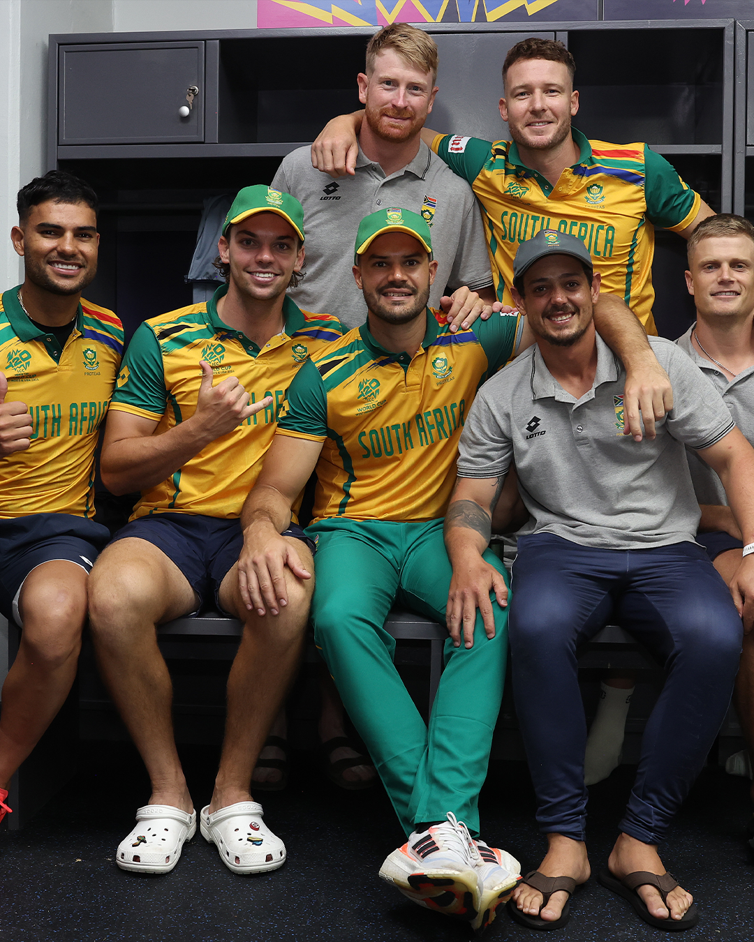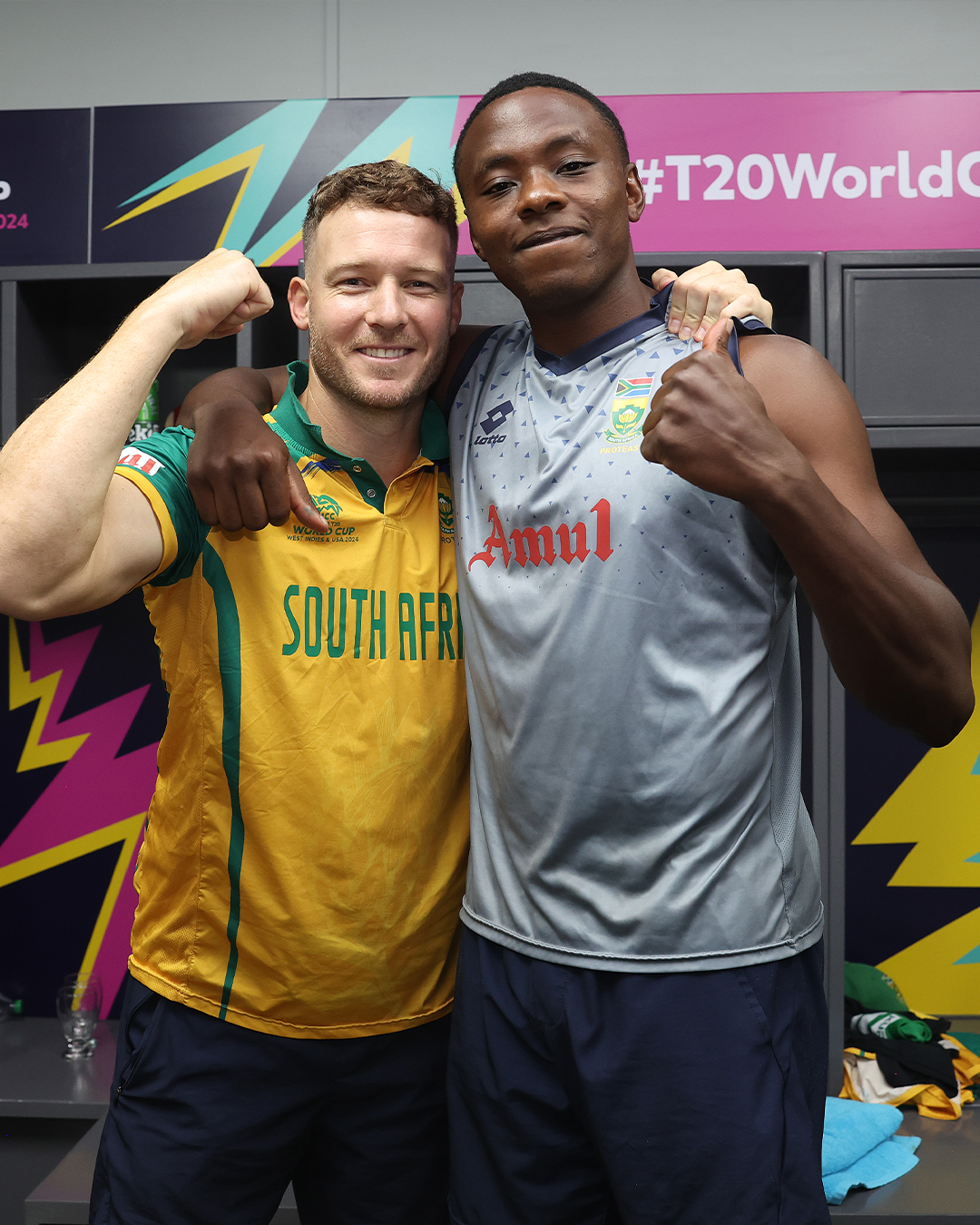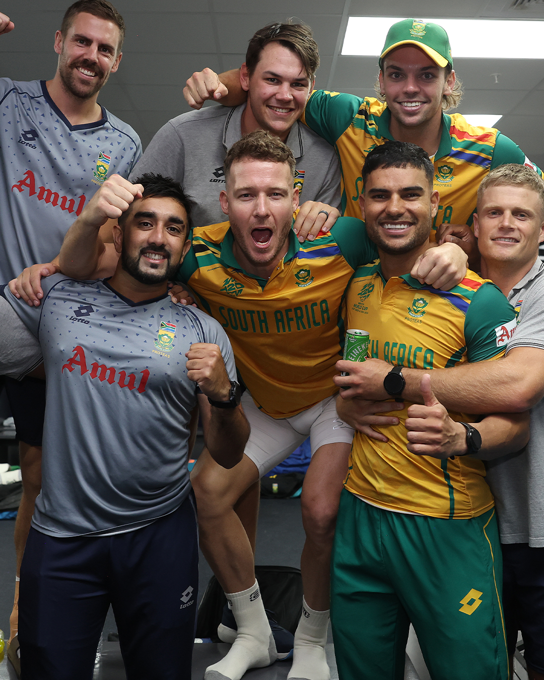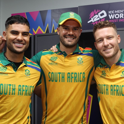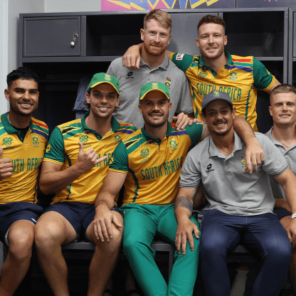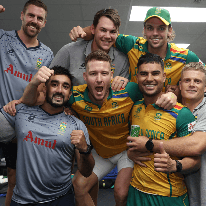 South Africa players after their historic win in Men's T20 World Cup 2024 semi-final